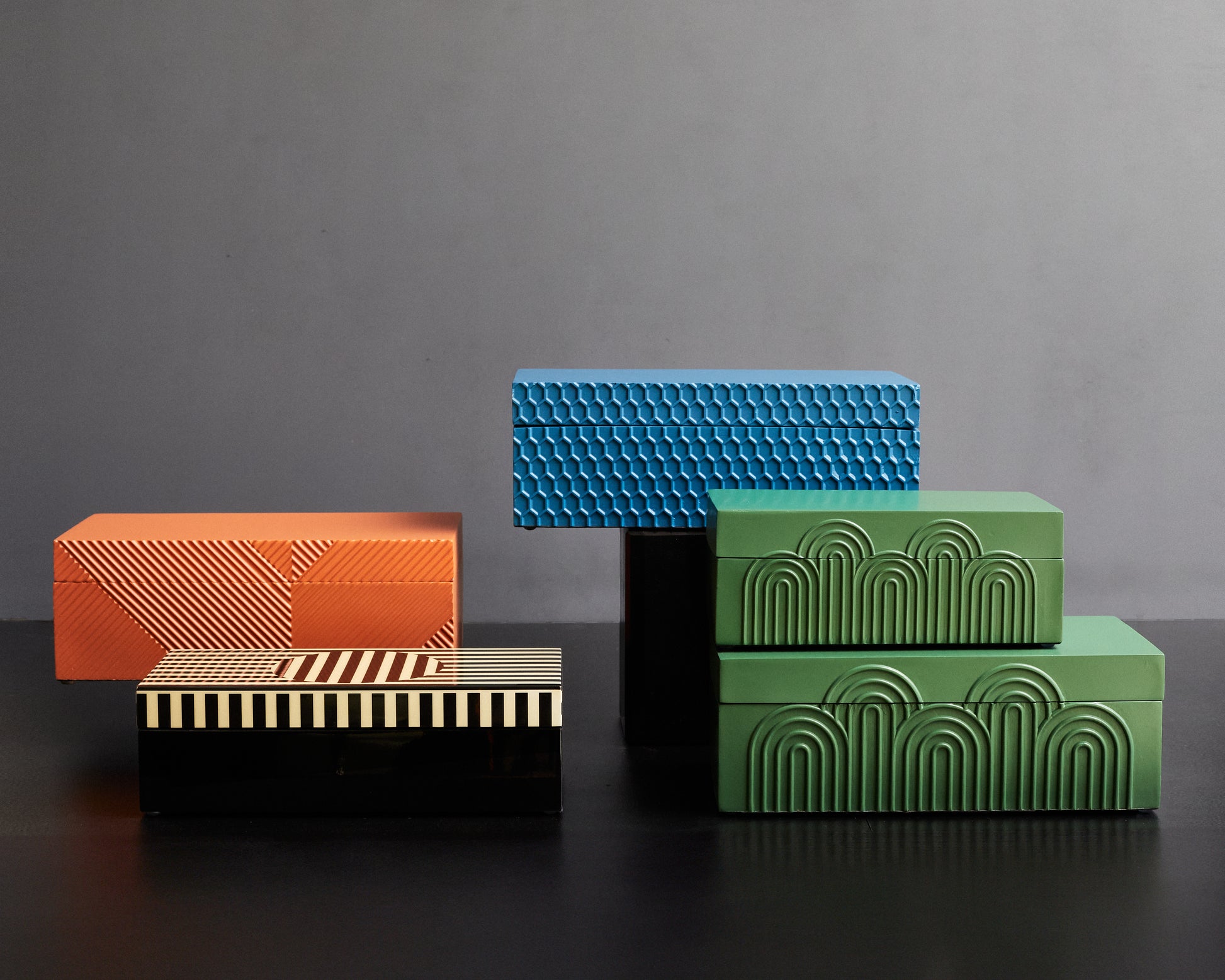 Elegante caja decorativa lacada blanco y negro. Unidades Totales: 2 |