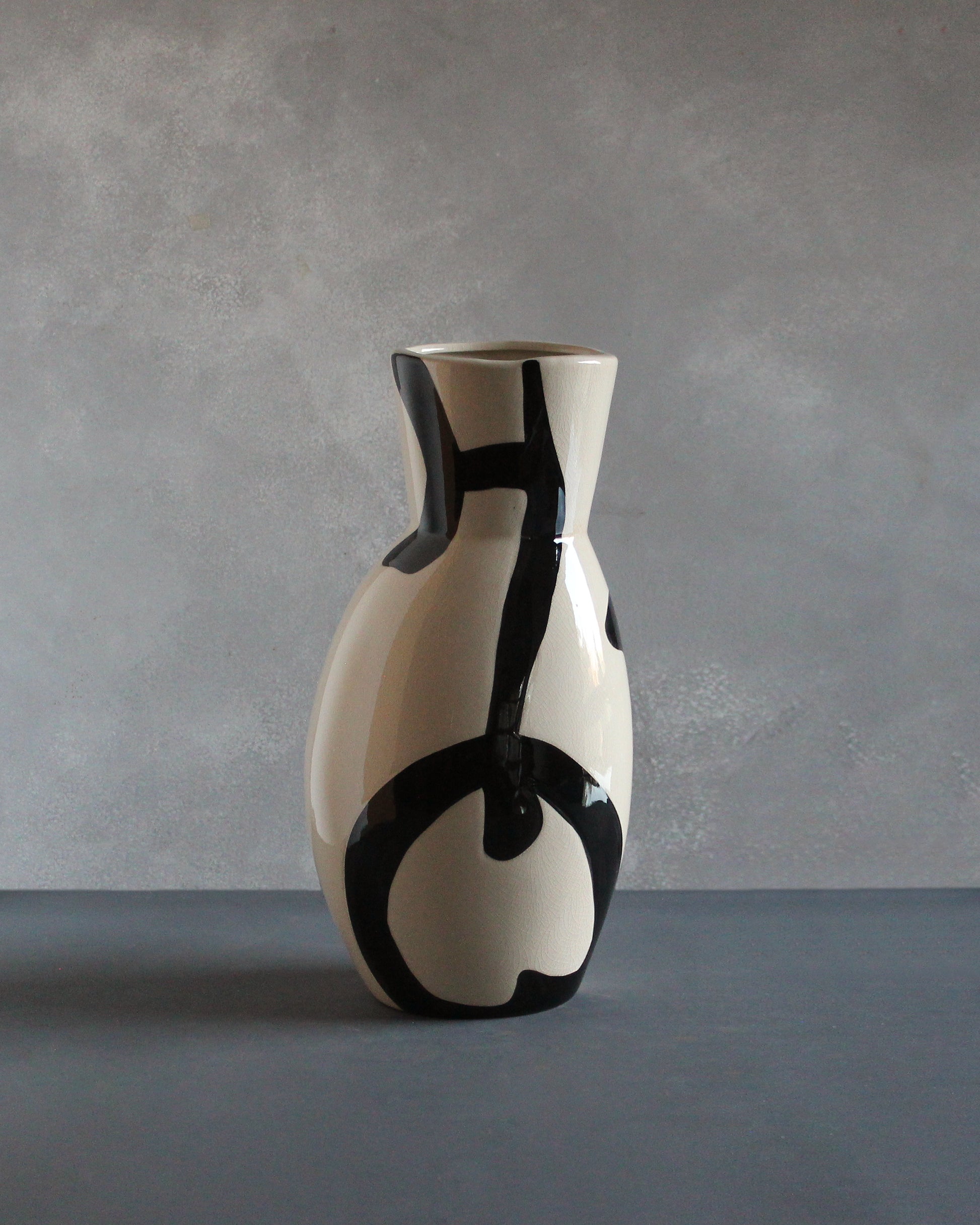 Jarrón de cerámica con efecto craquelado en beige y negro. Unidades Totales: 1 |