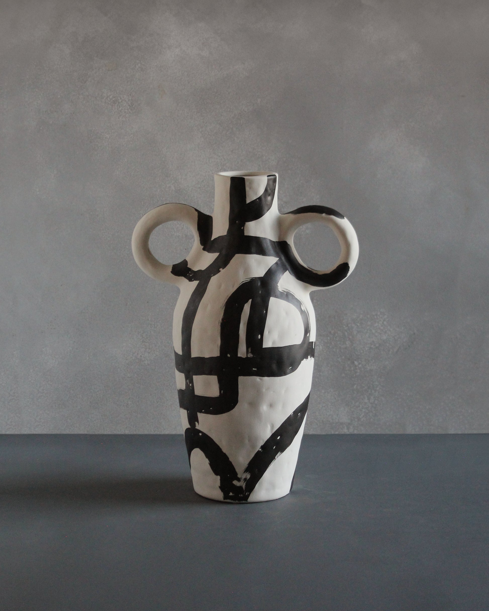 Jarrón con asas y relieve blanco y negro. Unidades Totales: 3 |