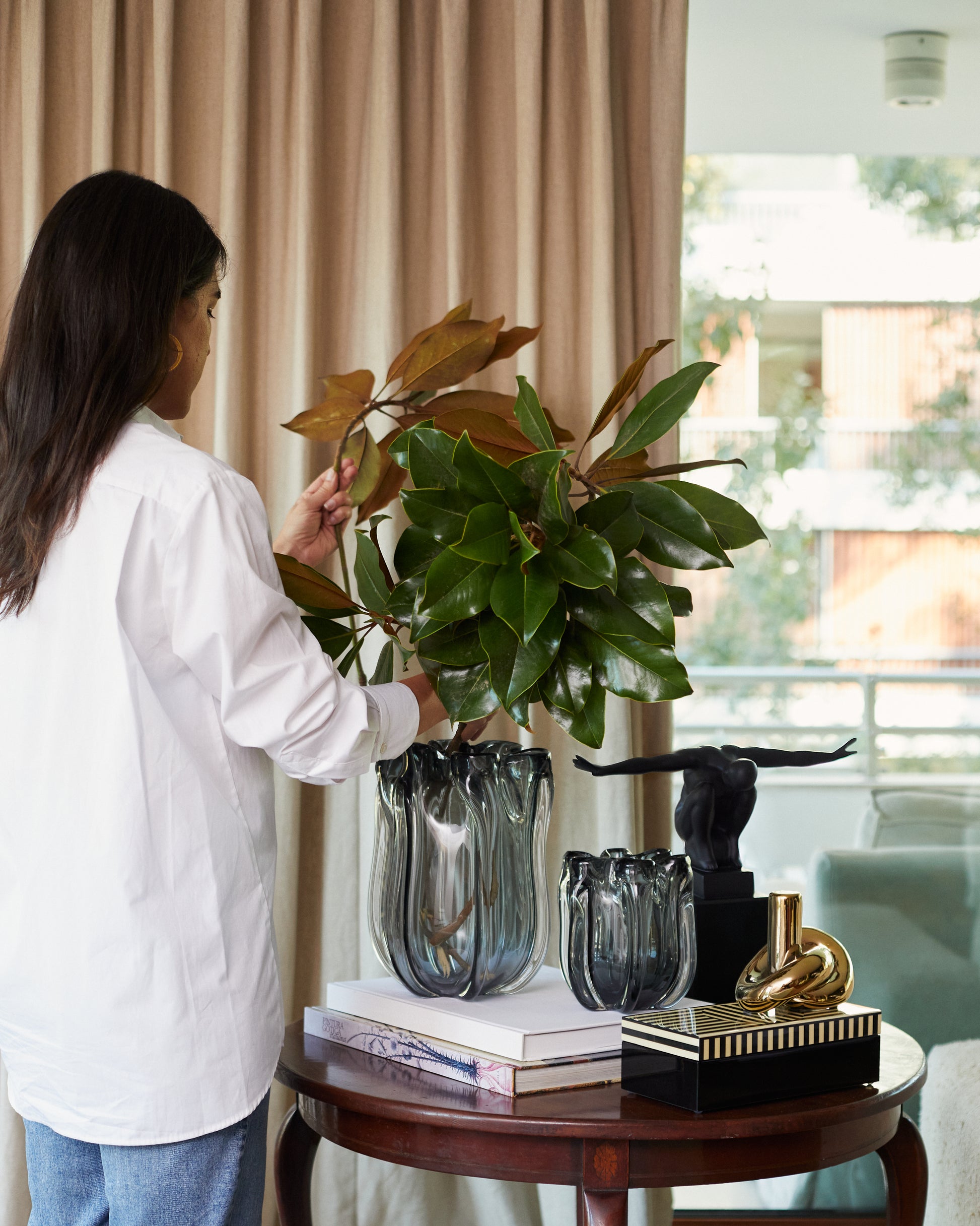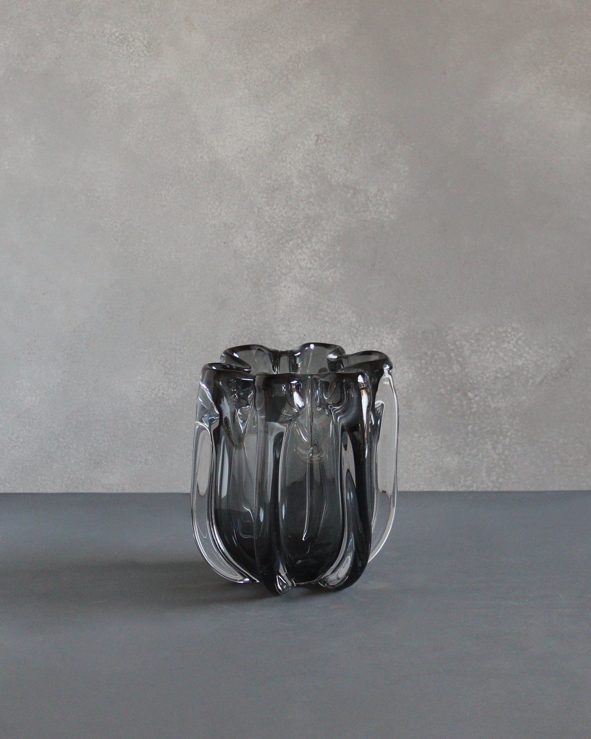 Florero de cristal pesado en color gris con efecto arrugado. Unidades Totales: 2 |